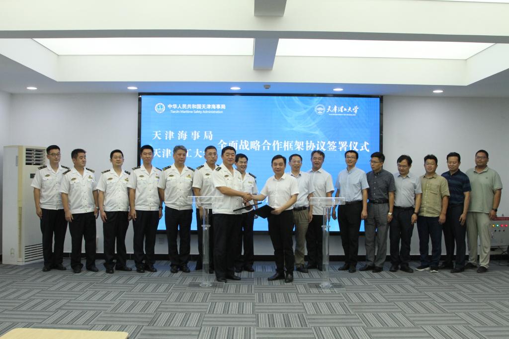 为服务交通强国战略实施,推进天津海事局评估中心建设,进一步加强双方战略合作,实现互惠共赢,8月11日,学校与天津海事局签署了《全面战略合作协议》。校长练继建、副校长叶宁,天津海事局局长聂乾震、副局长杨哲,以及双方单位相关部门负责人出席签约仪式并亲切交流。