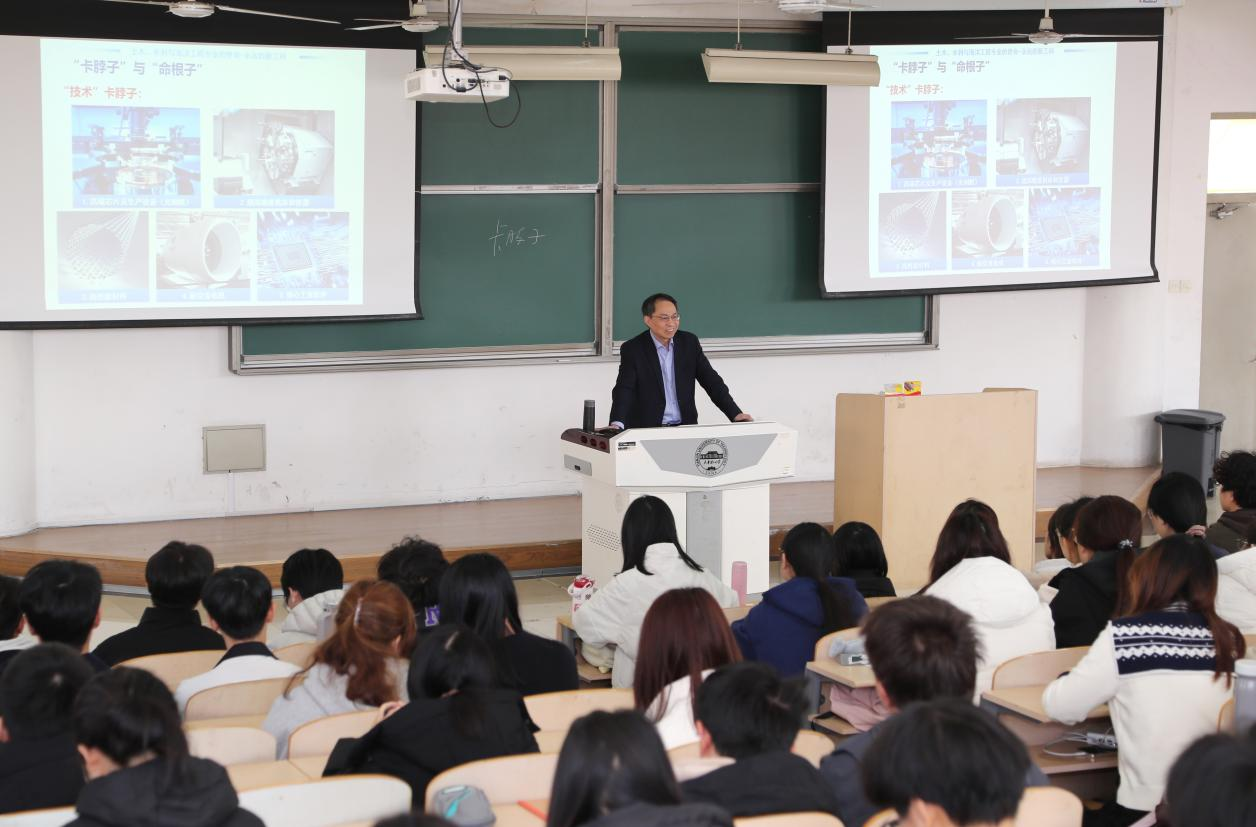 3月7日,校党委书记练继建走进课堂,以“乘势而上启新程 挺膺担当向未来”为题,为学生代表讲授2026年春季学期形势政策教育开学第一课。