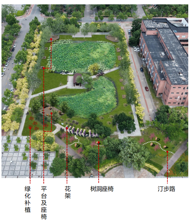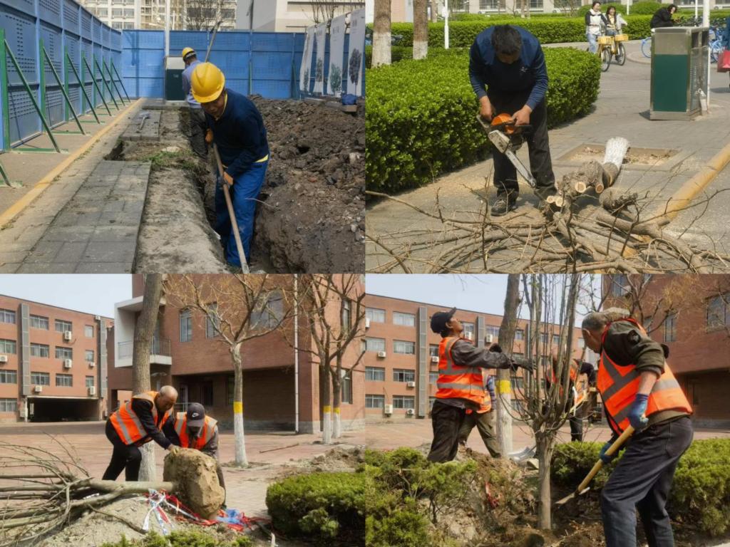 此次环境提升工程聚焦校园重点区域,精心组织、协同推进。在荷花池周边,施工团队正有序开展环境升级工作,通过优化景观布局、完善配套设施,着力打造兼具生态性与人文美的校园水景空间。与此同时,日新道道路两侧及北部宿舍区也迎来绿化焕新,工人们正抢抓时令,换植优质海棠树。一株株新栽的海棠迎风而立,待来日花开似锦,将为校园增添一道亮丽的风景线。