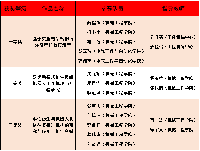 教务处、工程训练中心、机械工程学院、电气工程与自动化学院等相关单位部门高度重视,在参赛选手选拔,指导教师选派、场地经费保障等方面给予大力支持。我校共派出6支学生队伍参赛,各位指导教师和同学们利用一年左右时间积极备战,克服重重困难,最终勇创佳绩。