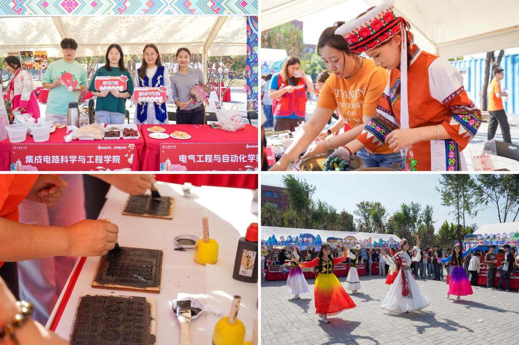 在民族传统文化展区,各学院师生多维度呈现、打造民族团结主题的文化大观园。通过场景化布置与互动体验,既展现了各民族厚重的历史底蕴,也融入了天理学子富有创意的时代色彩。