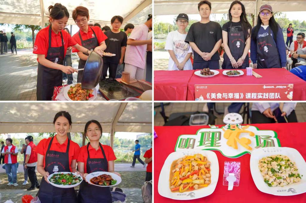 耕读丰收区域现场,一系列围绕丰收主题的劳动教育特色体验活动展开。在“丰收达人”环节,各学院代表队通力协作,迅速完成作物采摘与转运,构成一幅绚丽的秋收图景。“金玉满堂”玉米脱粒竞赛紧张刺激,选手们比拼速度与技巧,尽显青春活力。“粗粮味道”区域香气四溢,师生们品尝到“明理农场”采摘的新鲜玉米、花生和红薯。备受瞩目的“厨艺大赛”将活动推向高潮,各学院代表队既掌握了丰富的膳食知识,更在实战中大显身手,色香味俱全的菜肴赢得了师生们的一致好评。
