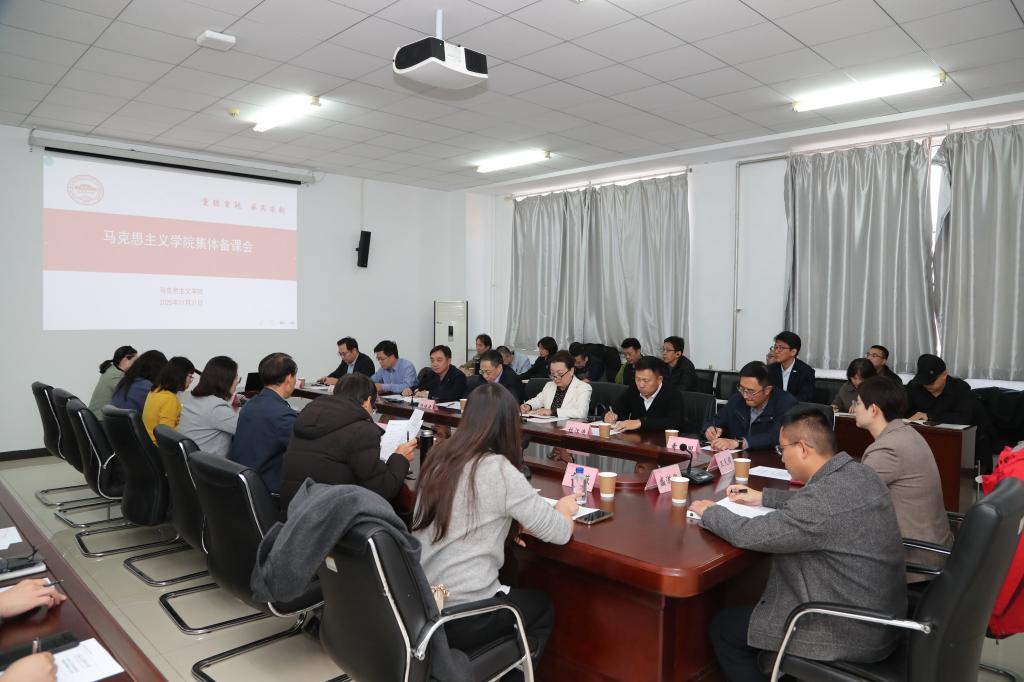 11月21日,马克思主义学院集体备课会在23号楼413会议室举行。校领导练继建、许瑞、叶宁参加。